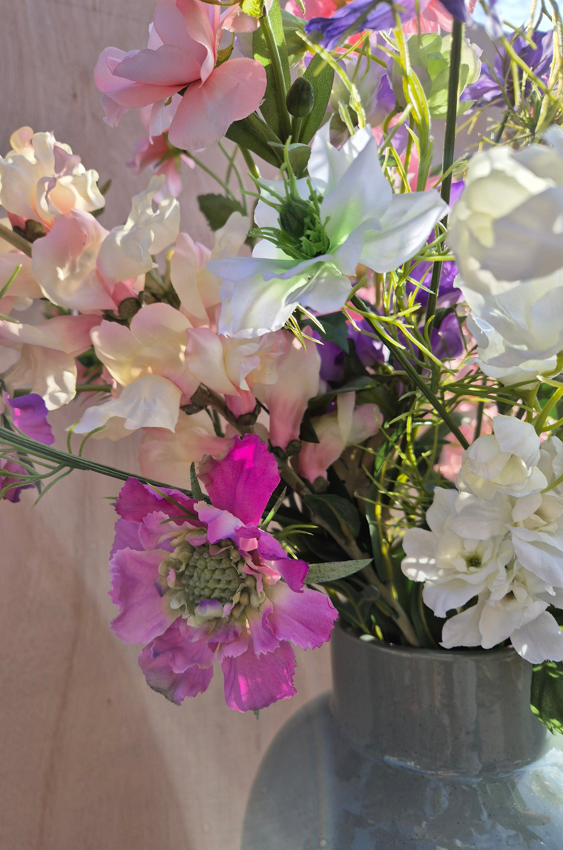 Met dit mooie veldboeket in pastel kleuren vrolijk je elke ruimte op! De lichte kleuren geven een frisse uitstraling. In dit boeket vind je verschillende soorten veldbloemen welke in het voorjaar volop groeien!