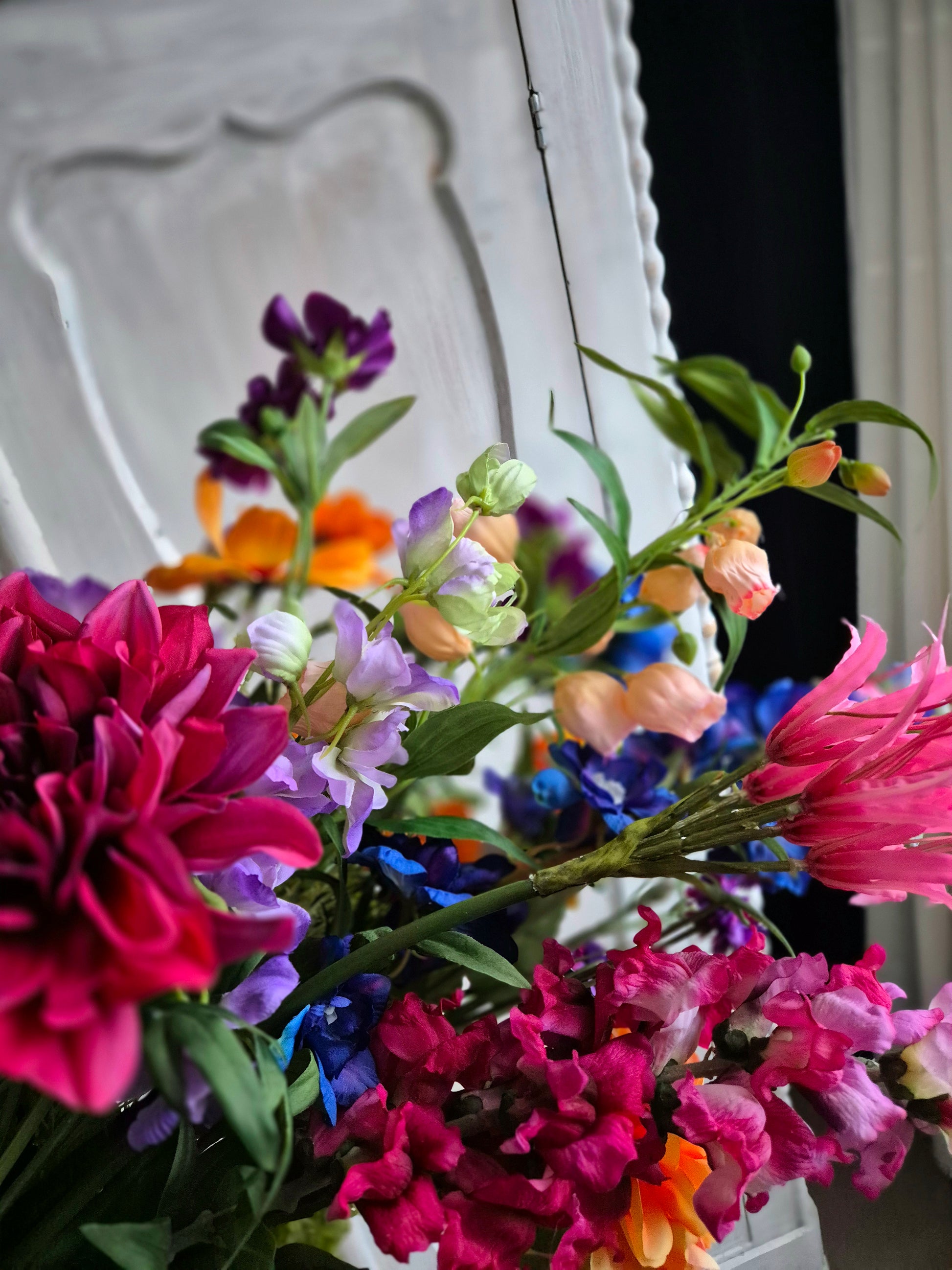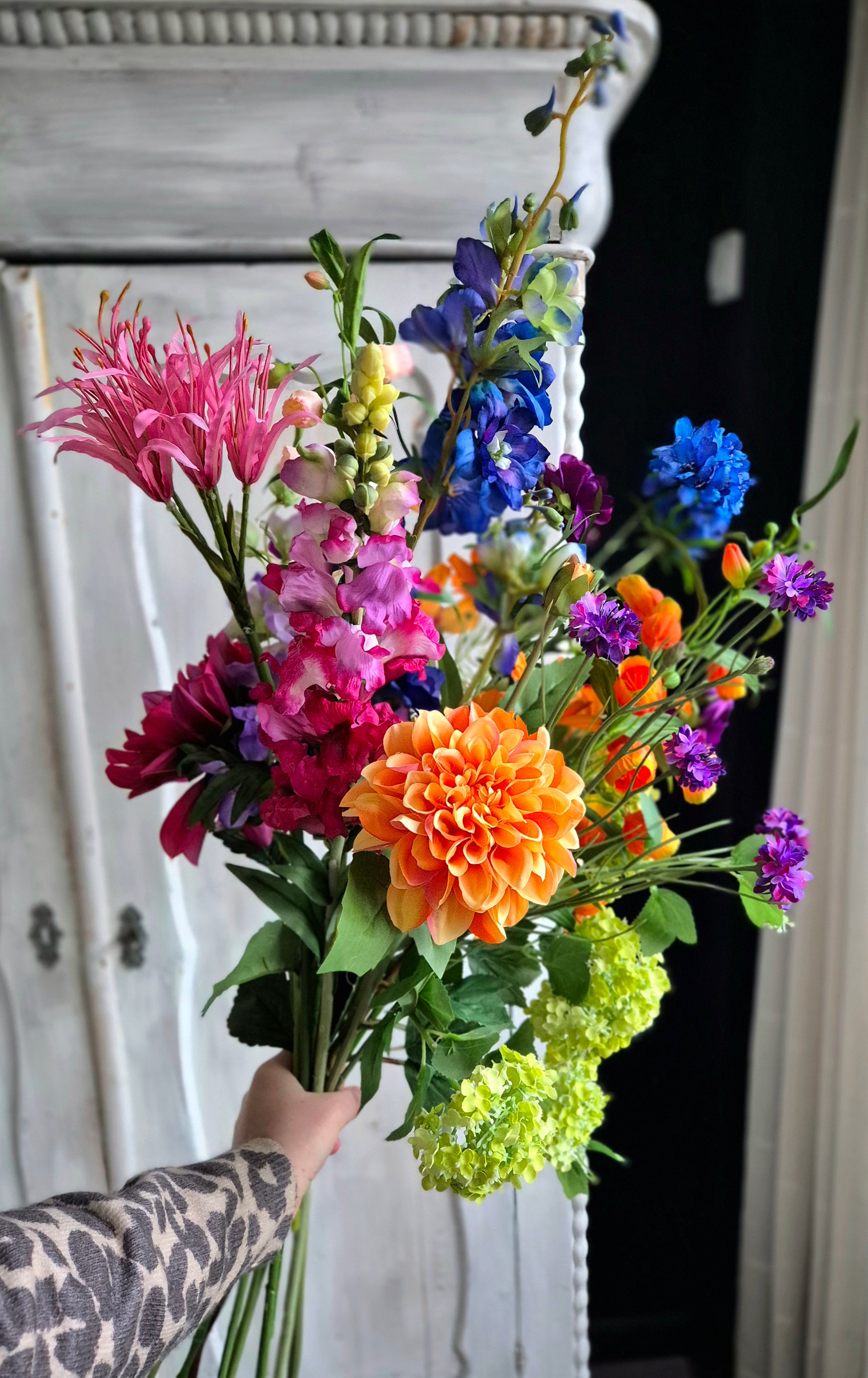 Een boeket vol power! Dat is 'pluk kracht'! Een boeket met pit door alle felle kleuren en uiteenlopende bloemsoorten. Ik (Laura) ben er dol op! Als het om bloemen en kleuren gaat kan het niet bont genoeg! Deze bos zorgt voor pit! In elke ruimte!